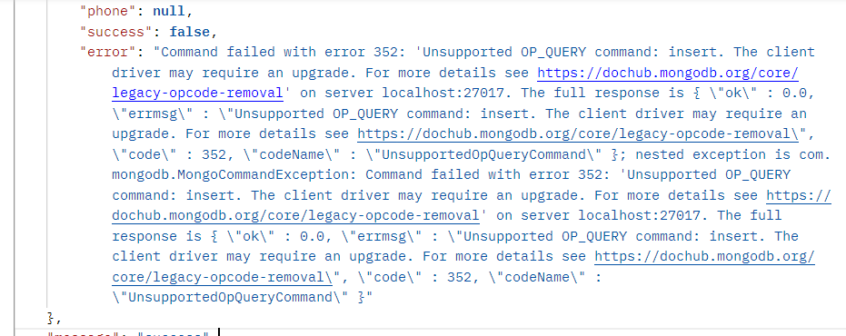 Command failed with error 352 : 'Unsupported OP_QUERY command': insert.
